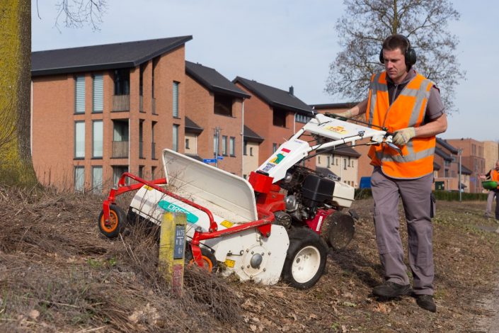 Het maaien op 5 cm hoogte voor de ‘veiligheid’ geeft alleen een optisch opgeruimd effect, je doet niets aan het verversen van de planten. Houd ca. 1 cm als werkhoogte aan. Uitzonderingen zijn: Bergenia en Sedum. Deze soorten kunnen op sommige plaatsen wat lastiger terugkomen. Advies is om hier de machine even op te lichten en ca. 3 cm te laten staan. Wél maaien, niet overslaan!